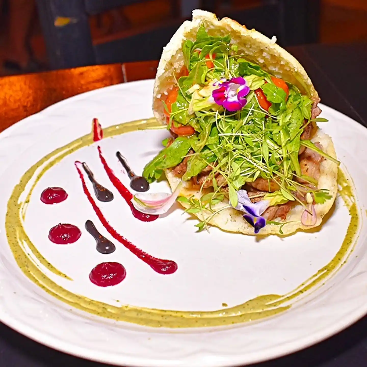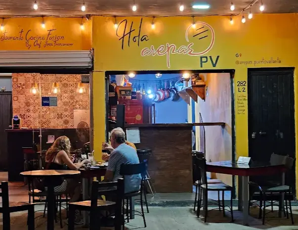 Hola Arepas PV es un restaurante de cocina fusión en Versalles, Puerto Vallarta, con enfoque en sabores venezolanos y toques del Caribe, México y el Mediterráneo. Su menú incluye arepas clásicas y premium, patacones, cachapas, platillos venezolanos, postres, café, coctelería, vinos y opciones de temporada. El espacio ofrece terraza, ambiente familiar y opciones de entrega y para llevar.